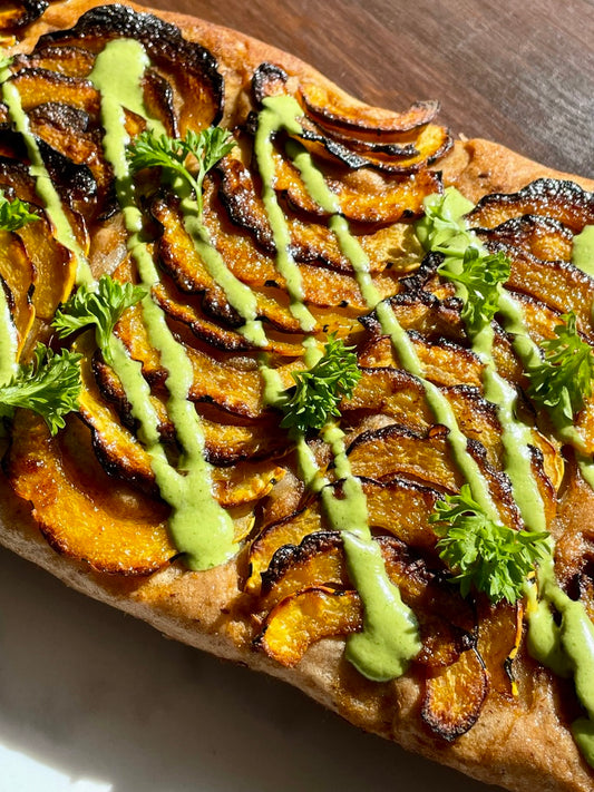 Bread of the month: Delicata squash flatbread and tahini sauce